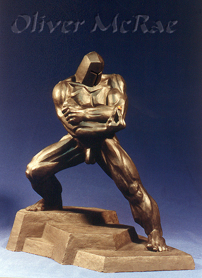 Struggle Driven by an irrepressible passion for figurative art, McRae yet came of age in the time of rabid Modernism, when all realist and literary tendencies were viciously demeaned and damned by the abstract expressionist paradigm. While tenaciously adhering to his figural predilection, McRae also developed a heartfelt regard for the formalist compositions of abstract sculpture, in time visiting Sir Henry Moore at his Much Hadham estate. This sculpture reflects a young artist's attempt to reconcile two monolithic and seeming antithetic worldviews. Moore's sage response to McRae's troubled portfolio was paternal and gracious: "You're doing just fine. Keep up the good work!"
